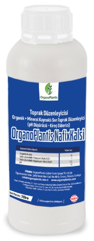 OrganoPlantis NafixKalsi, alkalen özellik gösteren topraklardaki kirecin ve sodyum kökenli tuzluluğun olumsuz etkisini gidermek amacıyla geliştirilmiş yüksek etkili bir organomineral pH düşürücü-kireç ve tuz giderici (pH<2) üründür. İçeriğinde bulunan organik madde ve inorganik bileşenleri sayesinde toprağın alkalinitesini nötralize ederek, bitkilerin besin maddelerini daha etkin almalarını sağlar, ortamdaki Na’un K ve Mg ile yerdeğiştirilmesini sağlayarak, Na’un topraktan uzaklaşabilir forma geçmesini sağlar toprak verimliliğini artırır, bitki gelişimini destekler, verim artışına katkı sağlar.