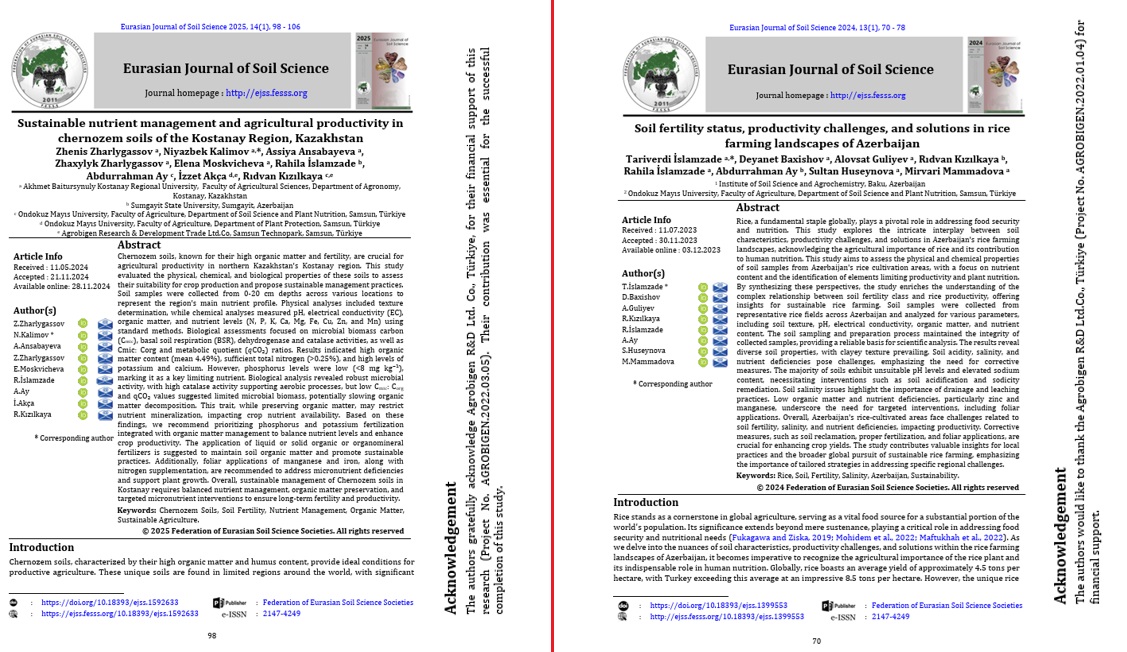 Agrobigen, bu yayınların ortaya çıkmasında sadece finansal değil, aynı zamanda saha çalışmaları, laboratuvar analizleri ve bilimsel iş birlikleri dahil olmak üzere tüm araştırma süreçlerinde aktif destek sağlamıştır. Bu katkılar, Agrobigen’in bilimsel bilginin yaygınlaştırılması ve sürdürülebilir tarımsal üretimin güçlendirilmesi konusundaki kararlılığının bir göstergesidir. Kazakistan ve Azerbaycan’da yürütülen bu çalışmalar, bölgesel tarımın gelişmesine hizmet ederken, aynı zamanda uluslararası ölçekte toprak verimliliği yönetimine yeni bakış açıları kazandırmaktadır.