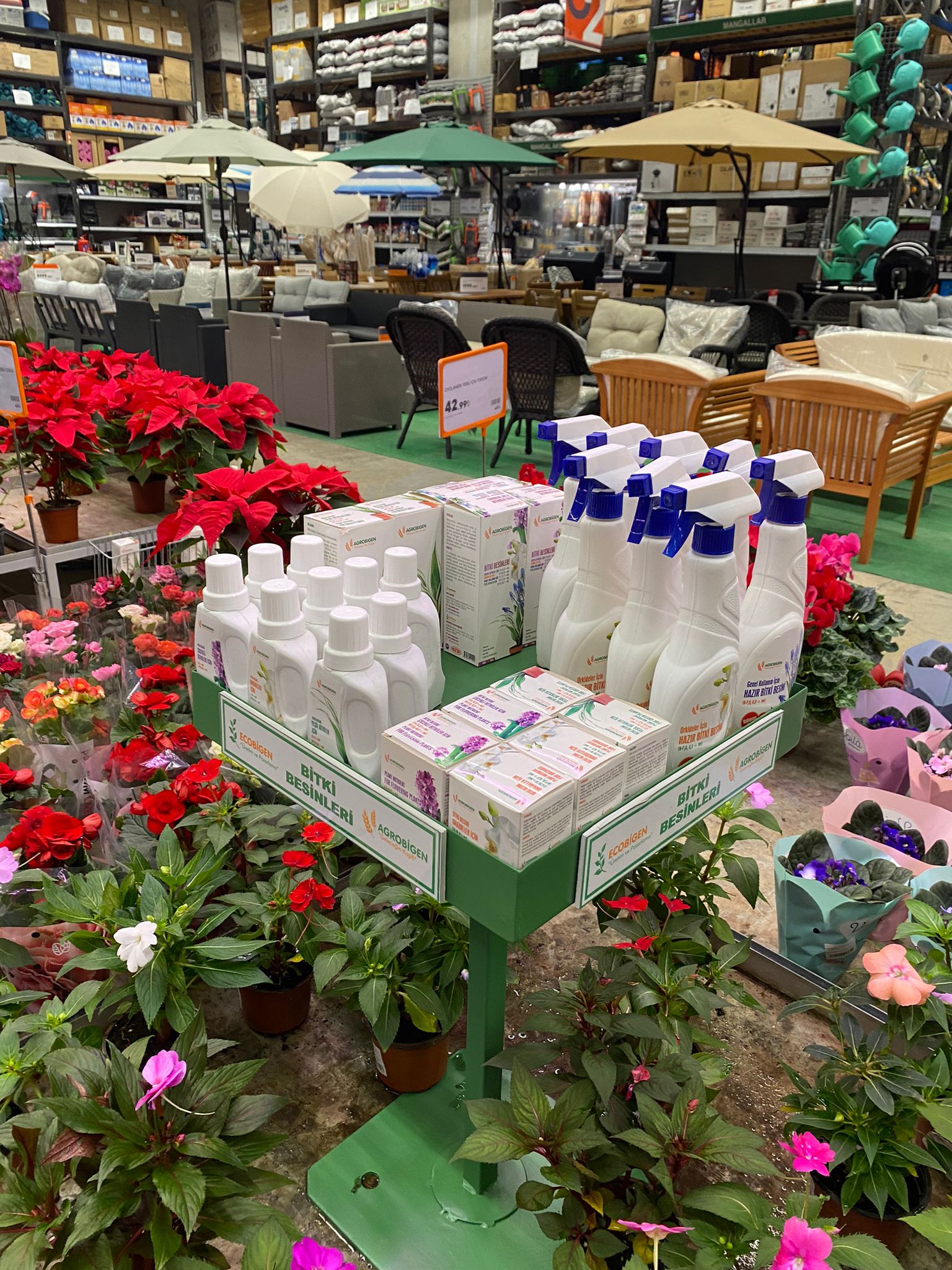 Agrobigen tarafından geliştirilen ve “Faydalı Model” başvurusu ile içeriği ve sunum şekli koruma altına alınan “Ev içi Kullanım Bitki Besinleri” farklı hacimlerde, sıvı veya katı formlarda olmak üzere bir Bigen Grup firması olan Ecobigen’in Bafra’daki fabrikasında üretilip, yapı marketlerde ve çiçekçilerde satışa sunulmuştur.