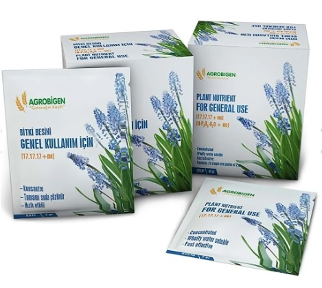 2 gr lık paketlerde (2 gr x 24 adet) tek kullanımlık Agrobigen bitki besinleri (katı, toz)