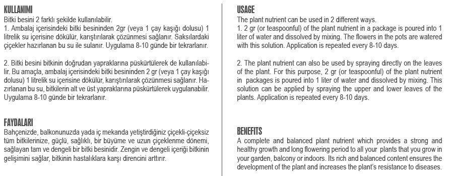 35 gr lık paketlerde (35 gr x 4 adet) Agrobigen bitki besinleri (katı, toz)
