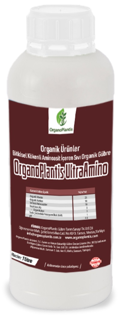 OrganoPlantis UltraAmino, yüksek oranda bitkisel kökenli serbest amino asitler, organik azot (N) ve potasyum (K) içeren güçlü bir sıvı organik gübredir. Bitkilerde protein sentezi, hormon üretimi ve enerji metabolizmasını doğrudan destekler. Özellikle stres koşullarında (kuraklık, yüksek sıcaklık, tuzluluk vb.) uygulandığında bitkinin hızlı toparlanmasını sağlar, büyüme kayıplarını en aza indirir. Düzenli kullanımda ürün verim ve kalitesini artırır.